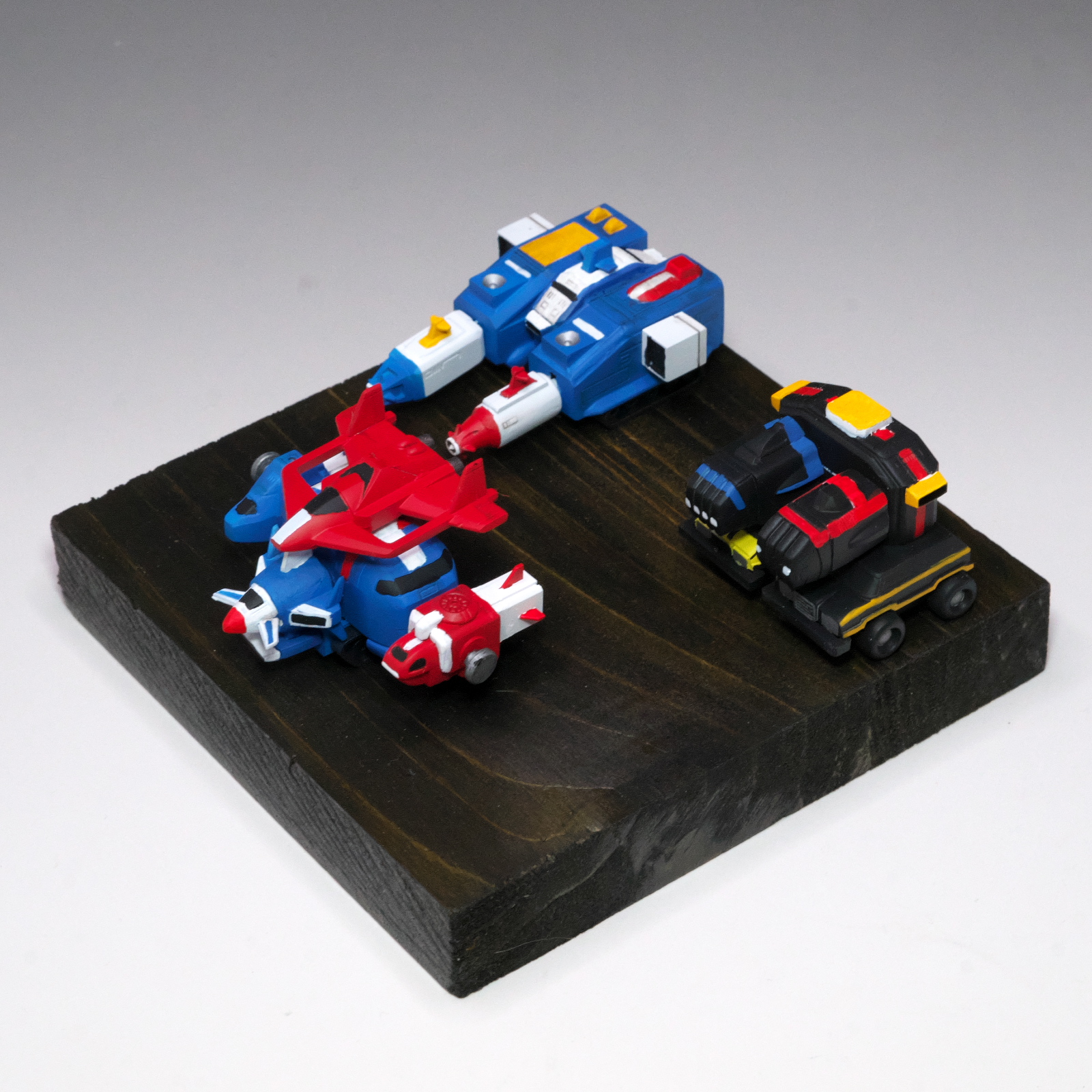 キットは合体できないのですが、胴体以外は各機ごとに分割してるので、胴体を切り離して各チームごとの形態にしてみました。