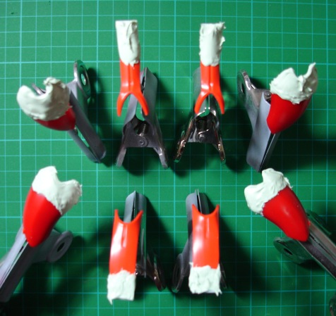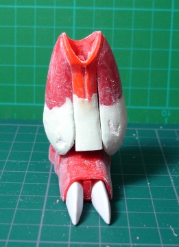 サフで埋められる程度のキズや気泡は残っていますが、問題はないでしょう。 これでメインの改造は終了。いやぁ、長かったですね。作業そのものは簡単なんですが、時間はかかります。またやるときは(もうやりたくない)覚悟が要りますね。 モモ、脛、足首の3箇所で延長しました。これでスラッとした足長になりました。最後によく水洗いしてサフを吹き、最終チェックです。キレイにやったつもりでもサフを吹くとやっぱりあっちこっちにアラがでてきます。穴や隙間がいくつか見つかったので、それらを修正し完了。 ■ その他の部分 このレプラカーン、足さえ何とかしてしまえば後はほとんどいじらなくてもいいくらいの完成度です。