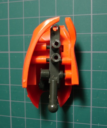 これでモモ部分は約3mm延長されました。その3mmにはなんの根拠もなく、例によってフィーリングです。 次に足首ですが、甲の部分は内側のくるぶし部分を削って分量を減らします。 足首のボールジョイントを受けるポリキャップを取り付けるところがあります。そこをエポキシパテで4mmくらい底上げし、ポリキャップを90度回転させて取り付けました。 こうすることで足首そのものが延長されるのプラスポリキャップが上下に5mm動くようになります。これは足首を曲げるときのクリアランスになります。 これって狙ってやったわけではなく、脚全体を伸ばすのにはどうするか考えていろいろいじっていて発見しました。 ![]() 脚部の加工はまだまだ続きます。 いよいよ脛パーツの加工ですが、ここが1番苦労しました。 足が短い短い言ってますが、最大の要因はこの脛の部分です。