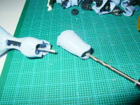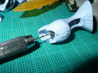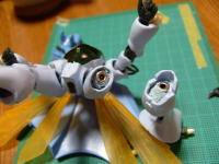 昆虫の外殻を使っているのだからあんまり角が出ているのは変だろうという判断からです。 ![]() オーラコンバーターの角も同じ理由と、軽量化目的で削りました 残念ながら軽量化の効果は、角を削った程度では有りませんでした。