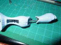![]() 組み立ててみると、かっこいい。 さすがバンダイ。 ○トラブル発生 ショック ![]() 折れちゃった。 穴あけて針金入れて。瞬着とエポキシパテで接着 修理完了
