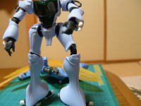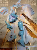 おまたせしました。中国から帰国しての一作目。 帰国して完成まで、な、なんとほとんど4ヶ月を費やしてしまいました。 時間かかった割には、完成度はいつも通りなのがちょっと残念ですが、まぁ見てやってください! ○倒れそう 製作開始当時、掲示板上に他の機体で「オーラコンバーターが重くて自立しない」との書き込みがありましたが、このダンバインは問題無く自立しました。 でも、やっぱり体の大きさに対してオーラコンバーターは重く、ちょっとバランスを崩すと倒れてしまいそうになるのですが、箱絵のポーズは全てクリアできたので、倒れそうなことに対する対策は無しで製作を開始しました。 ○ちょっと改造